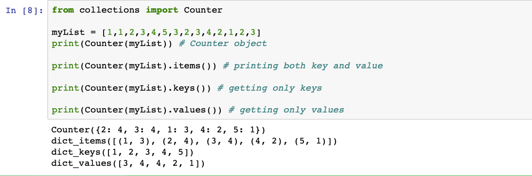 It stores the elements as dictionary keys and their occurrences are stored as dictionary values. From collections import Counter my_str Welcome to all my_count counter.